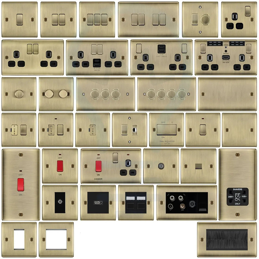 BG Nexus Antique Brass Switches & Sockets Full Range Black Inserts