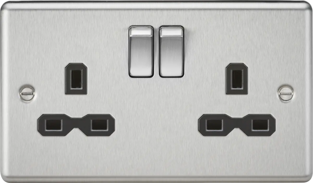 Knightsbridge Chrome 13A 2G DP Switched Socket with Twin Earths - Brushed with Black Insert – CL9BC