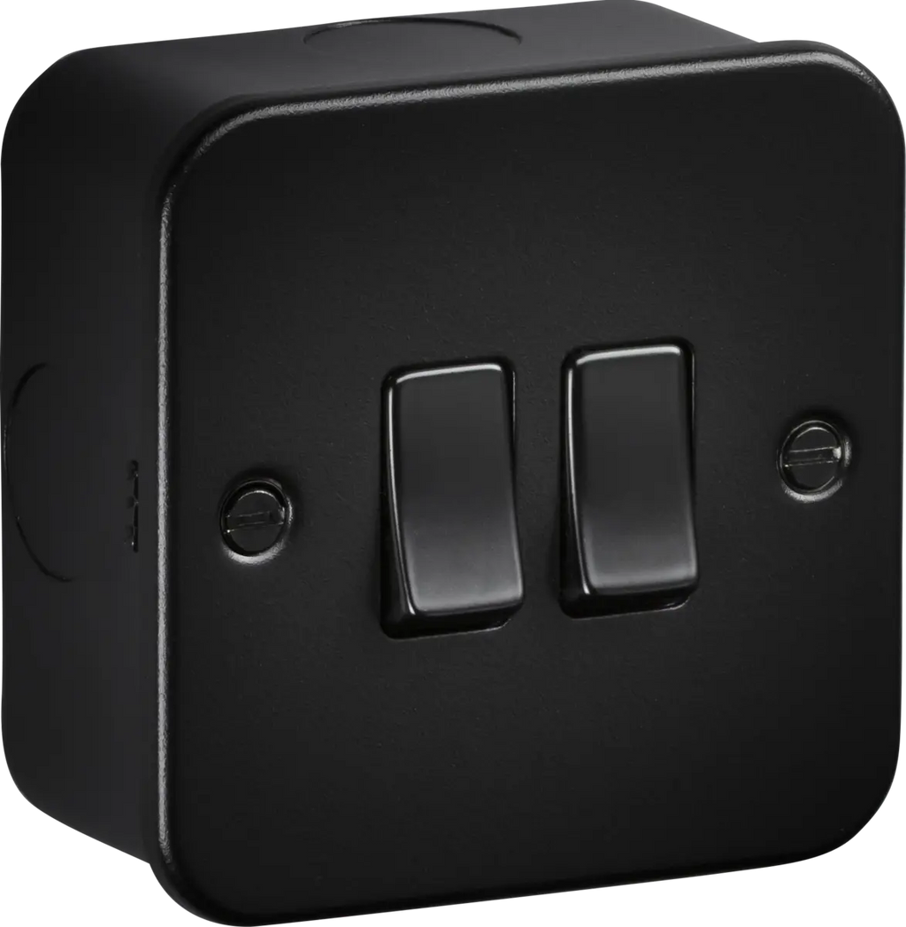 Knightsbridge Metal Clad Black 10AX 2G 2-way Switch